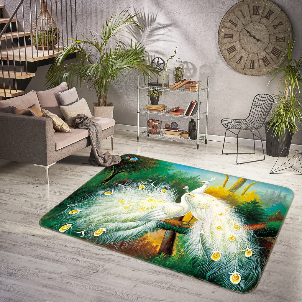 3D White Peacock 3068 Rug Non Slip Rug Mat