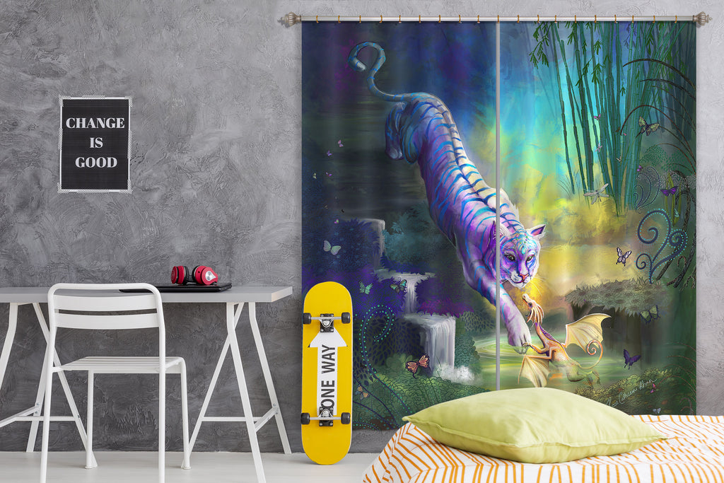 3D White Tiger 123 Rose Catherine Khan Curtain Curtains Drapes Dai