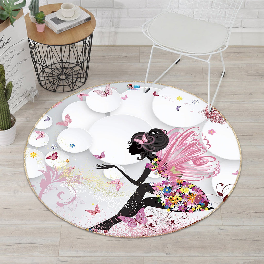 3D Wing Butterfly 325 Round Non Slip Rug Mat