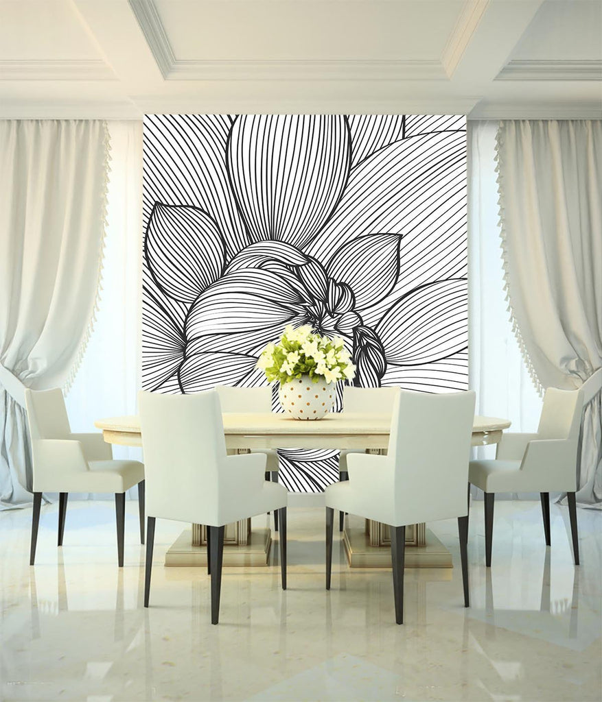 Make sure the wall surface is flat, clean and smooth. A clean and dry wall will help the adhesive from your wall mural to keep its stickiness. Put all panels on the ground, check the order. Measure and write down the dimensions of each panel. Mark vertical guidelines according to the panel's dimensions. Leave 2-3cm overlap between panels.