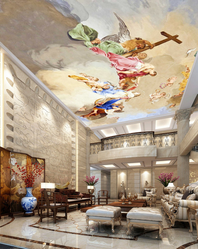 Align panel 2 to panel 1. Simply match the pattern of the mural (with 2cm overlap).No need to cut. Repeat for additional panels. Trim any ceiling and baseboard overage, lt's better to wipe the mural's surface with a wet cloth after the installation. Because it will make more sticky.