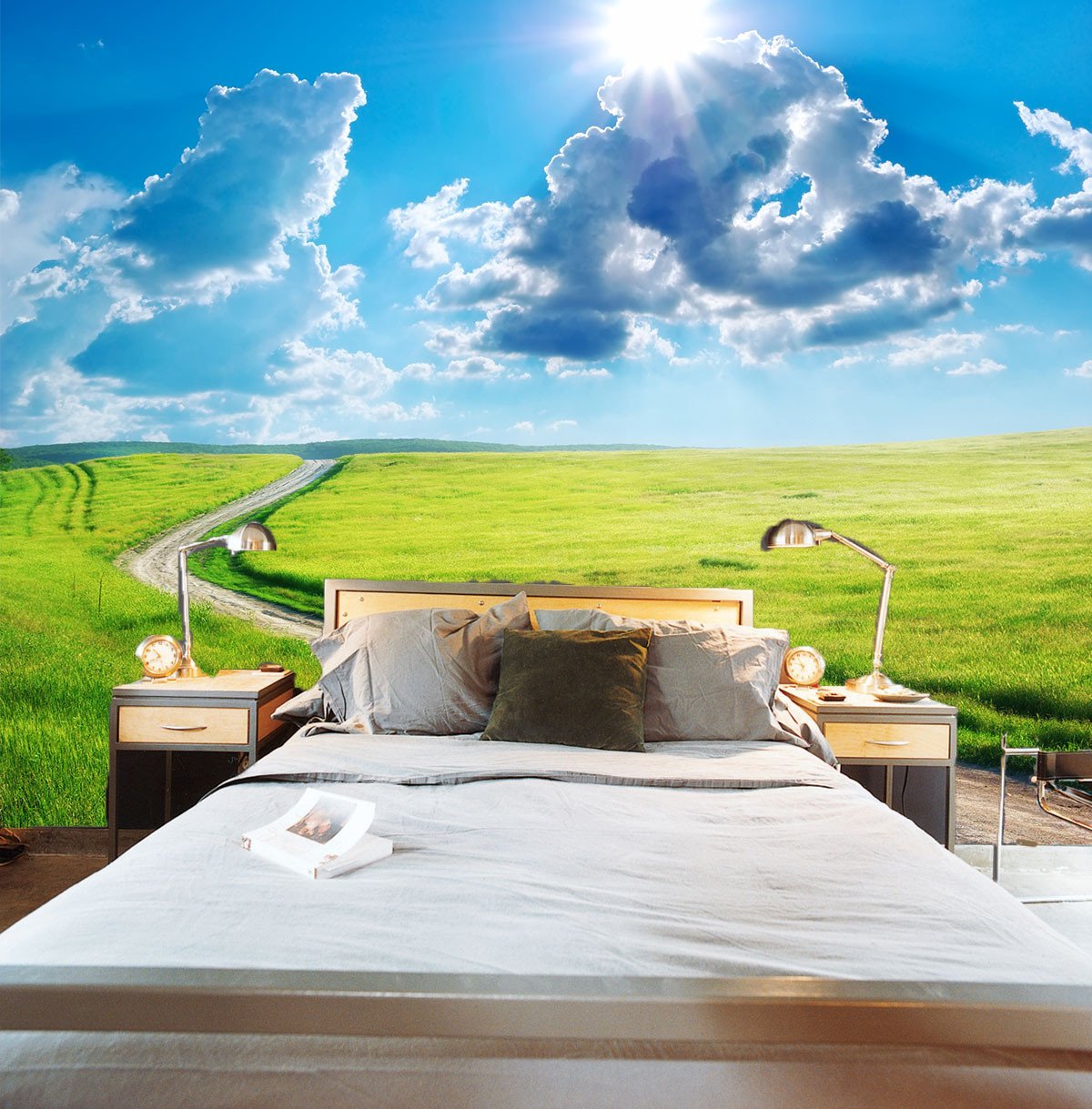 Apply the 1st panel. Leave 1-2cm overage on top. Bottom and left hand side. Smooth wrinkles and remove bubbles. Align panel 2 to panel 1. Simply match the pattern of the mural (with 2-3cm overlap)Peel away the excess piece.