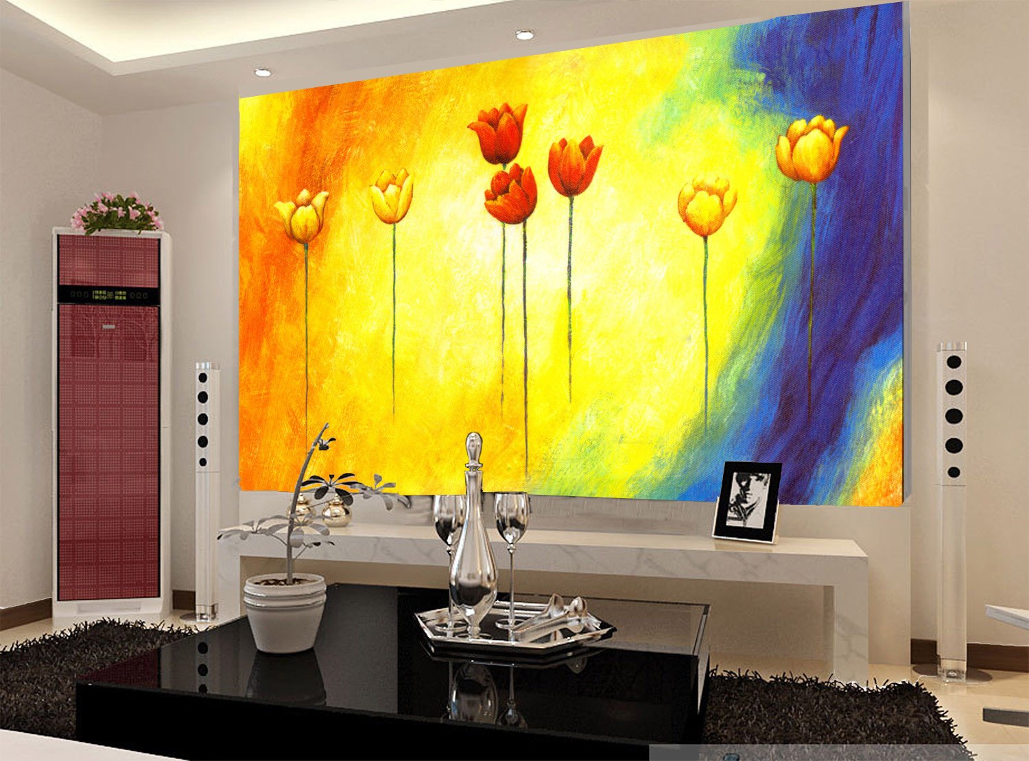 Make sure the wall surface is flat, clean and smooth. A clean and dry wall will help the adhesive from your wall mural to keep its stickiness. Put all panels on the ground, check the order. Measure and write down the dimensions of each panel. Mark vertical guidelines according to the panel's dimensions. Leave 2-3cm overlap between panels.