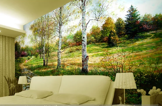 Align panel 2 to panel 1. Simply match the pattern of the mural (with 2cm overlap).No need to cut. Repeat for additional panels. Trim any ceiling and baseboard overage, lt's better to wipe the mural's surface with a wet cloth after the installation. Because it will make more sticky.